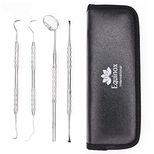 Equinox International 4-Piece Dental Hygiene Kit - Includes Tarter Scraper/Scaling Instrument, Dental Pick, Dental Sickle, and Mouth Mirror - Professional Surgical Grade Dentist Approved Tools