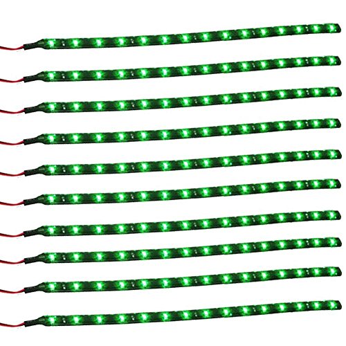 DIBMS 10 Pcs 30cm Car Truck Flexible Waterproof LED Light Strip Green