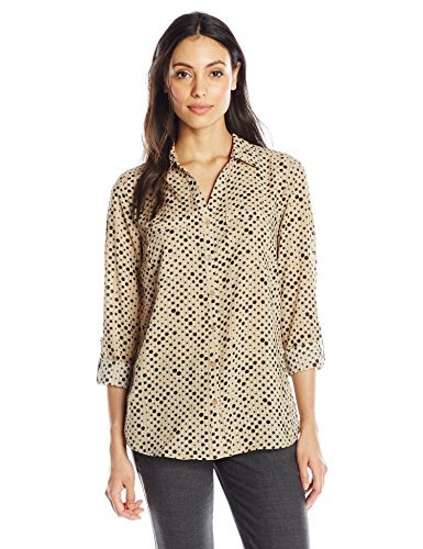 Notations Women's Printed Button-Front Blouse, Khaki Ice Moon, Large