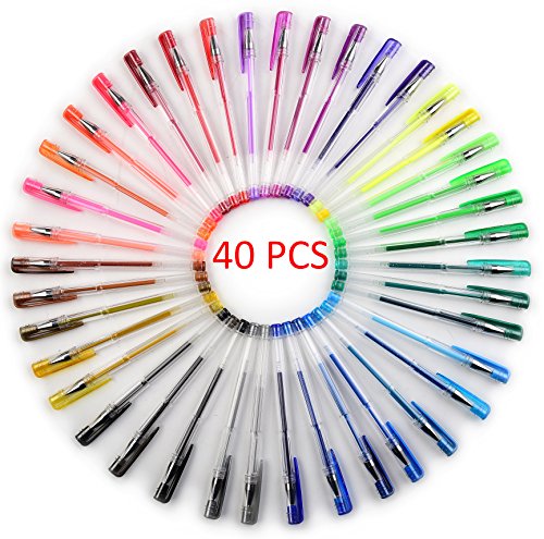 Everyday Essentials Gel Pens - Set of 40 Individual Colors with Barrel Case - Keep Your Pens Neat (40-Color)