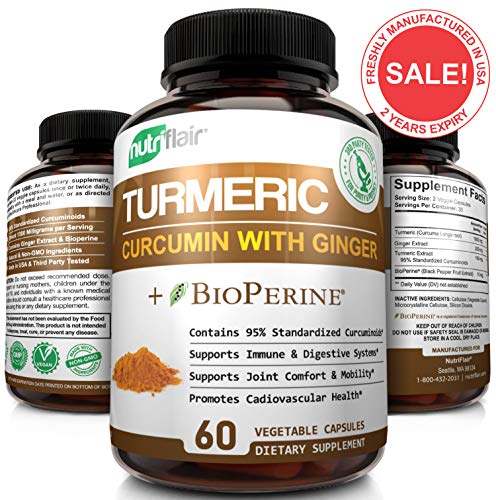 Turmeric Curcumin with Ginger & BioPerine Black Pepper Supplement, 120 Capsules - Anti-Inflammatory, Antioxidant, Anti Aging - 100% Natural, Non-GMO, Vegan Best Maximum Potency, No Side Effects