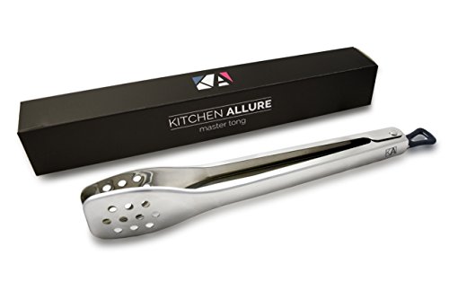 12 inch Stainless Steel Locking Kitchen Tong, For Cooking, BBQ Grill, Food & Salad, 100% Scratch Free Different from Silicone, Kitchen Allure’s Master Tong