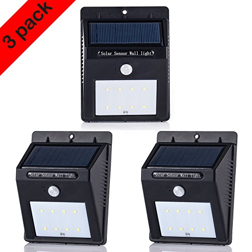 Solar Light, Brighter 8 Led Solar Powered Security Motion Sensor, Wireless Waterproof Outdoor Lighting for Patio, Deck, Pathway, Driveway,Garden Sensing Dust and Dawn Auto On/Off (Black, 3 Pack)