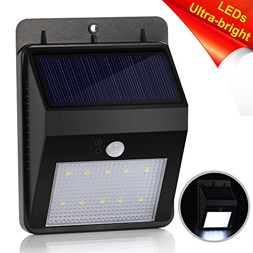 Pandawill 10 Led Solar Powered Motion Sensor Lights,Waterproof Wall Lights for Garden,Lane,Lane(Black, 1 Pack)