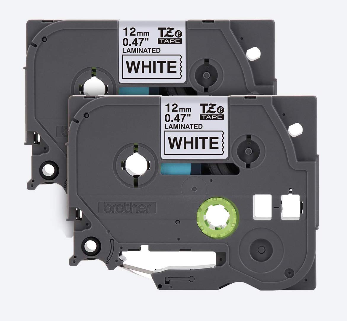 Brother Genuine P-Touch, TZE2312PK, 1/2" (0.47") Standard Laminated P-Touch Tape, Black on White, Laminated for Indoor or Outdoor Use, Water Resistant, 26.2 Feet (8M), 2-Pack