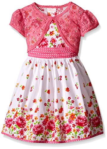 Youngland Little Girls' Toddler Shantung Floral Print Dress and Crochet Cardigan, Multi, 3T