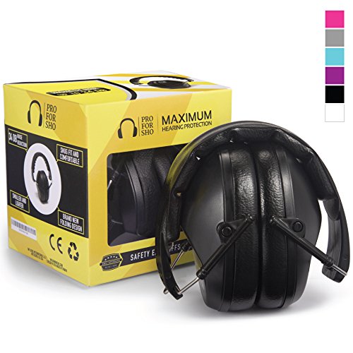 Pro For Sho 34dB Safety Ear Protection - Special Designed Ear Muffs Lighter Weight & Maximum Hearing Protection , Black