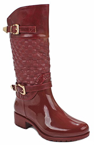 Kids Girls Link Wine Knee High Side Zip Riding Winter Rain Boots-1