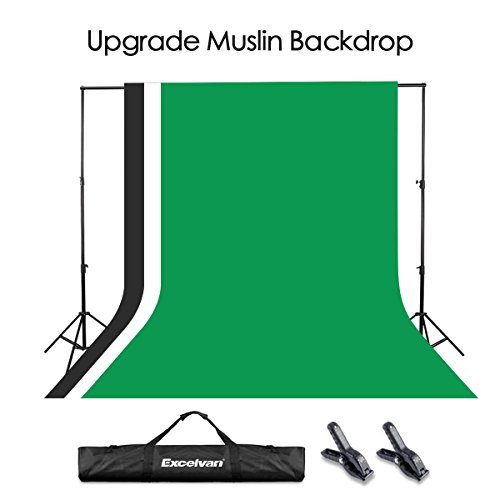 Excelvan Background Stand Support System Kit Photography Set 10 x 6.5FT and Green Black White Non-woven Backdrop 9 x 6FT