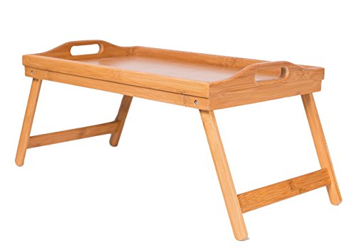 BirdRock Home Bamboo Lap Desk Bed Tray - Handles - Foldable Breakfast Serving Tray - Pull Down Legs - Laptop Stand - Natural