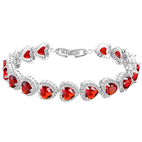 EVER FAITH Silver-Tone CZ July Birthstone Gorgeous Heart-Shaped Roman Tennis Bracelet Red Ruby-Color