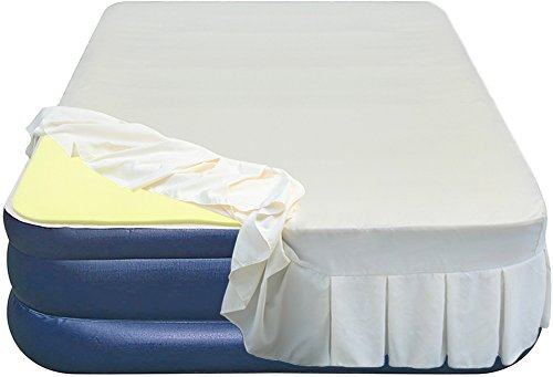 Airtek Full Flocked top air Mattress Plus 1" Memory Foam Topper and Perfectly Fitted Skirted Sheet 2ABF04005-MC