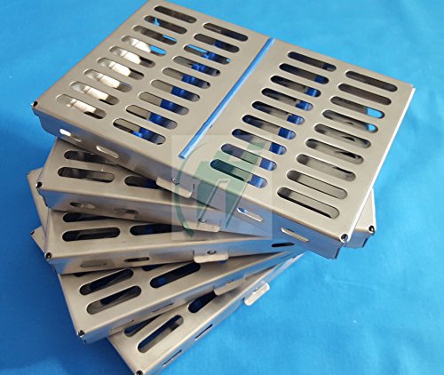 5 PCS FRENCH STEEL SURGICAL DENTAL INSTRUMENTS AUTOCLAVE STERILIZATION CASSETTE 7" X 5" X 0.75" TRAY RACKS BOX for 10 INSTRUMENTS (HTI BRAND)