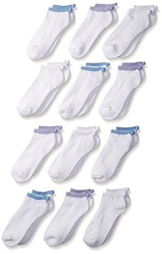 Fruit of the Loom Girl's 12 Pack Low Cut Socks with Pom, , Shoe Size: 10.5-4 (medium)