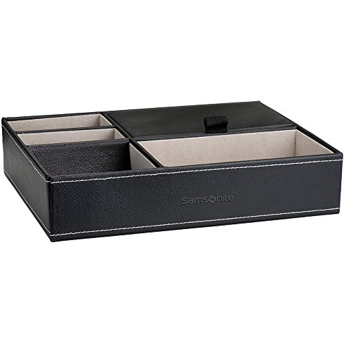 Samsonite Classic Black Leather Felt Lined Valet Tray with 5 Compartments