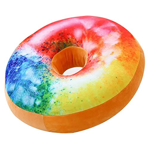ChezMax Round Doughnut Donut Seat Back Stuffed Cushion Insert Filler Filling Throw Pillow Plush Play Toy Doll for Home Sofa Couch Lounge Decorative Decor Rainbow Cake 16 X 16''