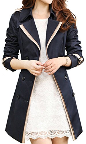 Uget Women's Elegant Long Trench Coat Jacket with Belt Black L