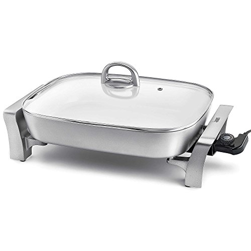 Bialetti Copper Titanium Ceramic 5.5 QT Capacity Electric Non Stick Skillet 1500W Silver Frame 12x15 Size
