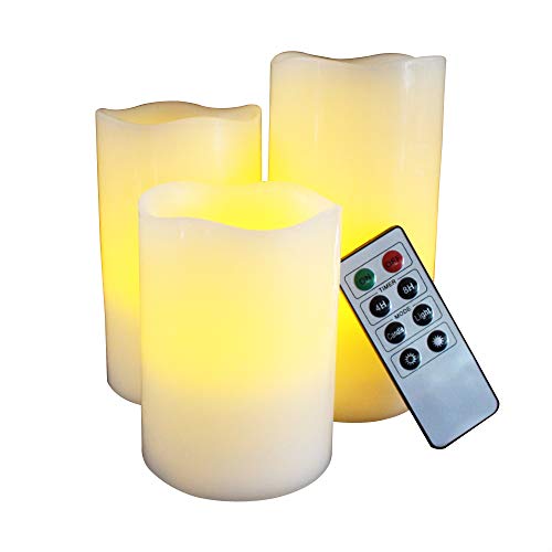 LED Lytes Flameless Candles, Set of 3 Ivory Wax Pillar Candle with Flickering Amber Flame and Timer Remote Control Battery Operated Candles for Weddings and Gift Ideas