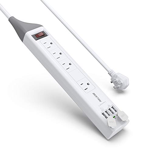 BESTEK 4-Outlet Power Strip Surge Protector 7.5A 4 USB Charging Ports with 6.6-Foot Extension Cord, ETL Listed-White