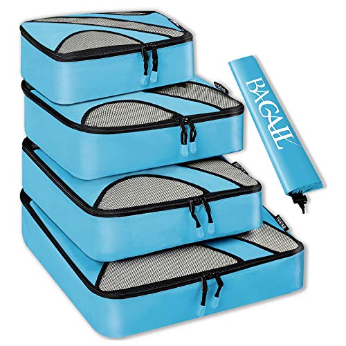 BAGAIL 4 Set Packing Cubes,Travel Luggage Packing Organizers with Laundry Bag Blue