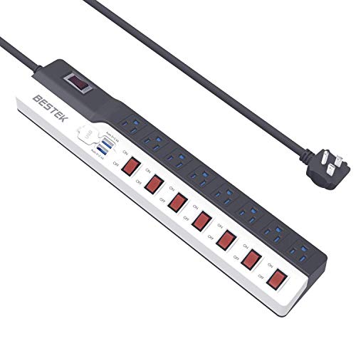 BESTEK 6-Outlet Power Strip Surge Protector 6.6-Foot Cord with 7.5A 4 USB Charging Station
