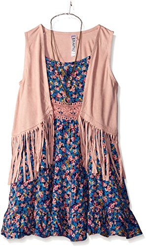 Beautees Big Girls' 2pc. Suede Vest Over Dress, Blue, 10
