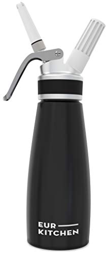 EurKitchen Professional Whipped Cream Dispenser w/Leak-Free Reinforced Aluminum Threads for Max Durability and Safety - 1-Pint Cream Whipper (Black) - Use Standard 8 Gram N2O Chargers (Not Included)