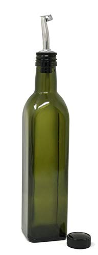 nicebottles - Olive Oil Dispenser with Stainless Steel Flip-Top Pourer, Dark Green, Square, 500ml