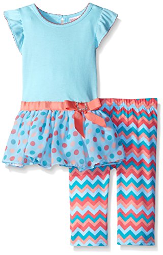 Youngland Girls' Knit Drop Waist Dress with Chevron Legging, Mint/Multi, 6X