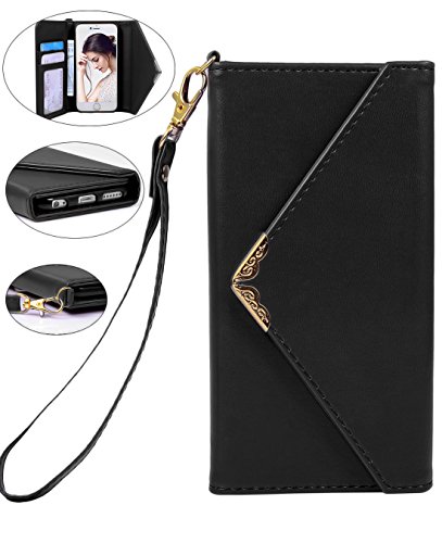 iPhone 6 Wallet Case, Crosspace iPhone 6s Envelope Flip Handbag Shell Women Wallet PU Leather Magnetic Folio Cover Cases with Credit Card ID Holders Wrist Strap for Apple iPhone 6/6s 4.7inch-Black