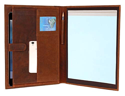 Handmade Genuine Leather Business Portfolio by Rustic Town | Professional Organizer Men & Women | Durable Leather Padfolio with Sleeves for documents and Notepad (Brown)
