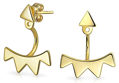 Geometric Triangle Fringe Spike Front Back Ear Jacket Earrings For Women For Teen 14K Gold Plated 925 Sterling Silver