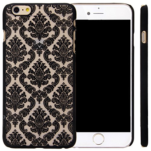 iPhone 6/6S Case, Berry Accessory (TM) Damask Design Pattern Rubber Coating Ultra Slim Fit Hard Hybrid Case Cover for Apple iPhone 6/6S (4.7 inch) + Berry logo stand holder (Black)
