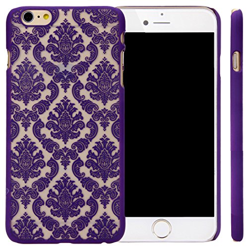 iPhone 6S Case, Berry Accessory Damask Design Pattern Rubber Coating Ultra Slim Fit Hard Hybrid Case Cover for Apple iPhone 6 / 6S + Berry Logo Stand Holder (Purple)