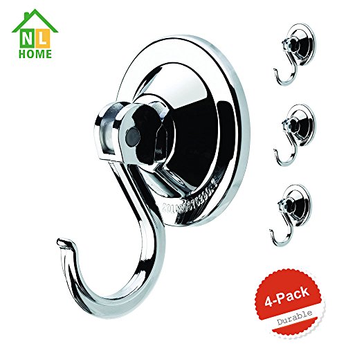 NL HOME 4-Pack Power Lock Suction Cup Hooks,Silver,by