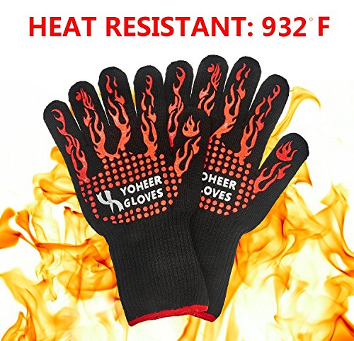 Yoheer 932F Extra-long Cut & Heat Resistant Oven Mitts with 100% Cotton Lining Good for Oven,Outdoor BBQ Grill,Fireplace Camping,Kitchen,Mechanics and so on.