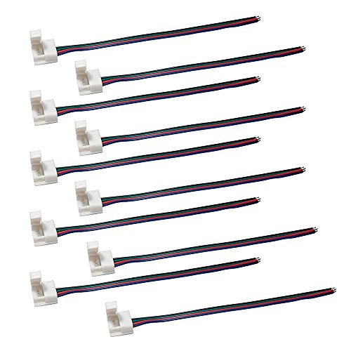 FINELED 10 Pcs Connectors Applicable for 10mm Wide Waterproof LED Strip Light RGB 5050, No Soldering (10pcs 4pin RGB Strip Connector with wire)