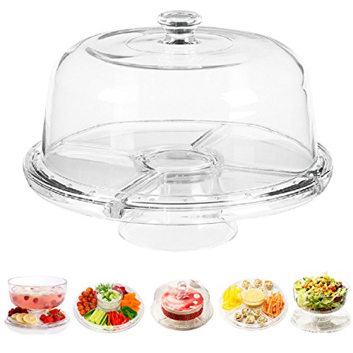 Cake Stand Multifunctional Serving Platter and Cake Plate With Dome - 6 Uses - Perlli