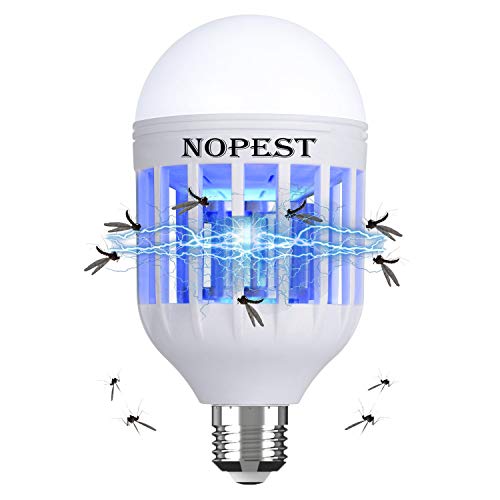 NOPEST Bug Zapper, 2 in 1 Mosquito Lamp, Electronic Insect & Fly Killer, Built in Insect Trap, Fits in 110V E26/E27 Light Bulb Socket, Suit for Indoor Outdoor Porch Patio Backyard