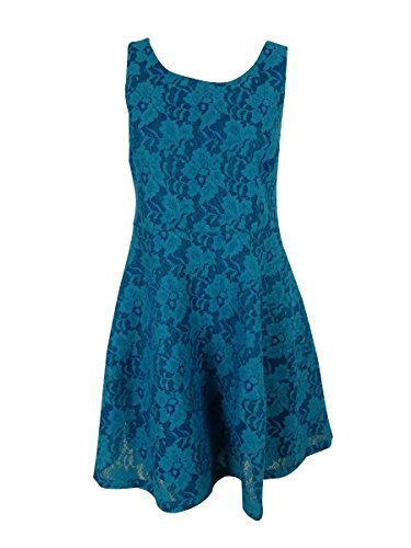 Calvin Klein Women's Plus Size Sleeveless Fit and Flare Dress with Belt, Lagoon/Blue, 18W