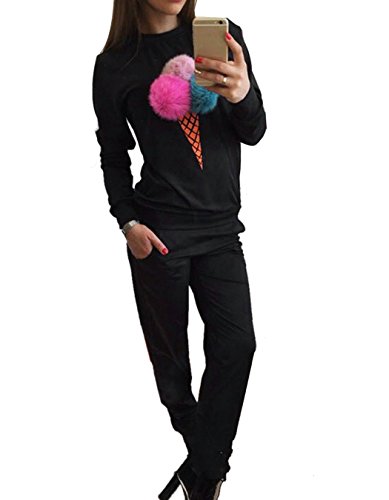 Fanala Women's Cotton 2PCS Sport Pullover Hoodie Tracksuit Sweatshirt Sweatpant Set
