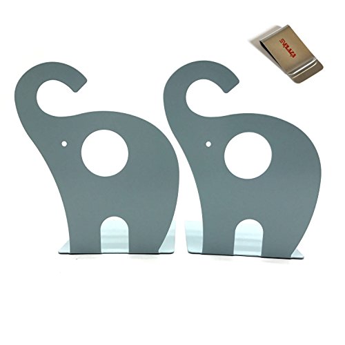 E'Plaza 1 Pair Heavy Bookends Metal Decorative 7.5" High (blue elephant)