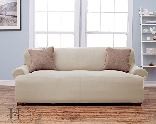 Home Fashion Designs Form Fit, Slip Resistant, Stylish Furniture Shield/Protector Featuring Lightweight Corduroy Fabric. Lucia Collection Basic Strapless Slipcover Brand. (Sofa, Ivory)