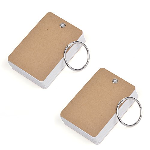 Cosmos ® Pack of 2 Binder Ring Easy Flip Flash Cards Study Cards, 80 Unruled Blank White Pages