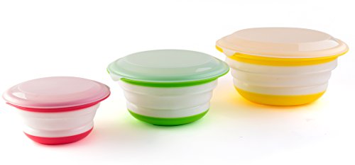 Fasmov Silicone Collapsible Storage Bowls with Lids-Set of 3