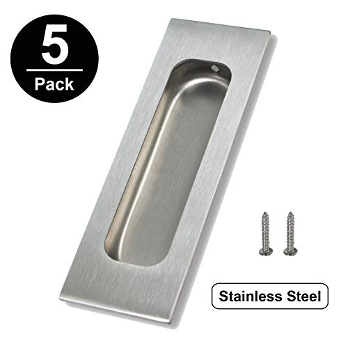 Gobrico 304# Stainless Steel Recessed Rectangular Flush Pull Concealled Cabinet Door Dresser Cupboard Handle 4.7" Long, 5Pack