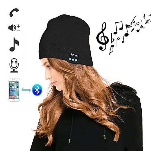 Bluetooth Hat 007plus Wireless Bluetooth Beanie Headphones Music Hat with Built-in Stereo Speakers For Running travelling (Black)