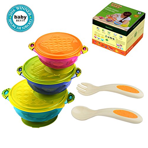 NEOTA Spill-Proof BPA-Free Baby Bowls and Spoon Set with Lids for Baby and Toddler, 3-Count