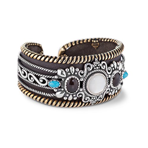 American West Sterling Silver Gemstone Leather Cuff Bracelet